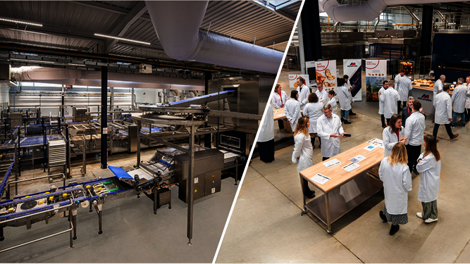 Nous avons récemment réaménagé ce Demo Center de 3 000 m². Équipé d'une ligne de production comprenant plus de 25 équipements, il sert de modèle pour une boulangerie industrielle durable et est hautement performant pour nos clients. Cette installation nous permet de simuler les différents processus de nos clients.