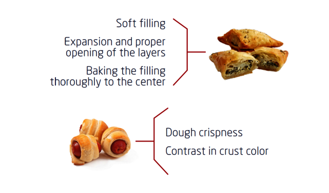 Because of their thin dough and moist fillings, puff pastry products require a perfectly controlled process to preserve their texture and organoleptic qualities. This is especially true for small puff pastry products, such as cocktail appetizers.